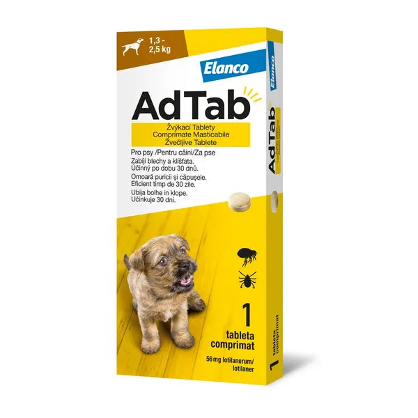 - The preparation AdTabᵀᴹ is suitable for dogs and puppies from 8 weeks of age and weighing from 1.3 kg with the correct dosage.