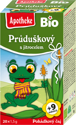 Apotheke BIO herbal tea for children, Průduškový with plantain is a delicious fruit or herbal tea, which is then used as a tasty drink to supplement the drinking regime and the necessary vitamins. You can use herbal mixtures for common children's problems. In addition, teas have been approved by the Czech Pediatric Society since the child was 9 months old.