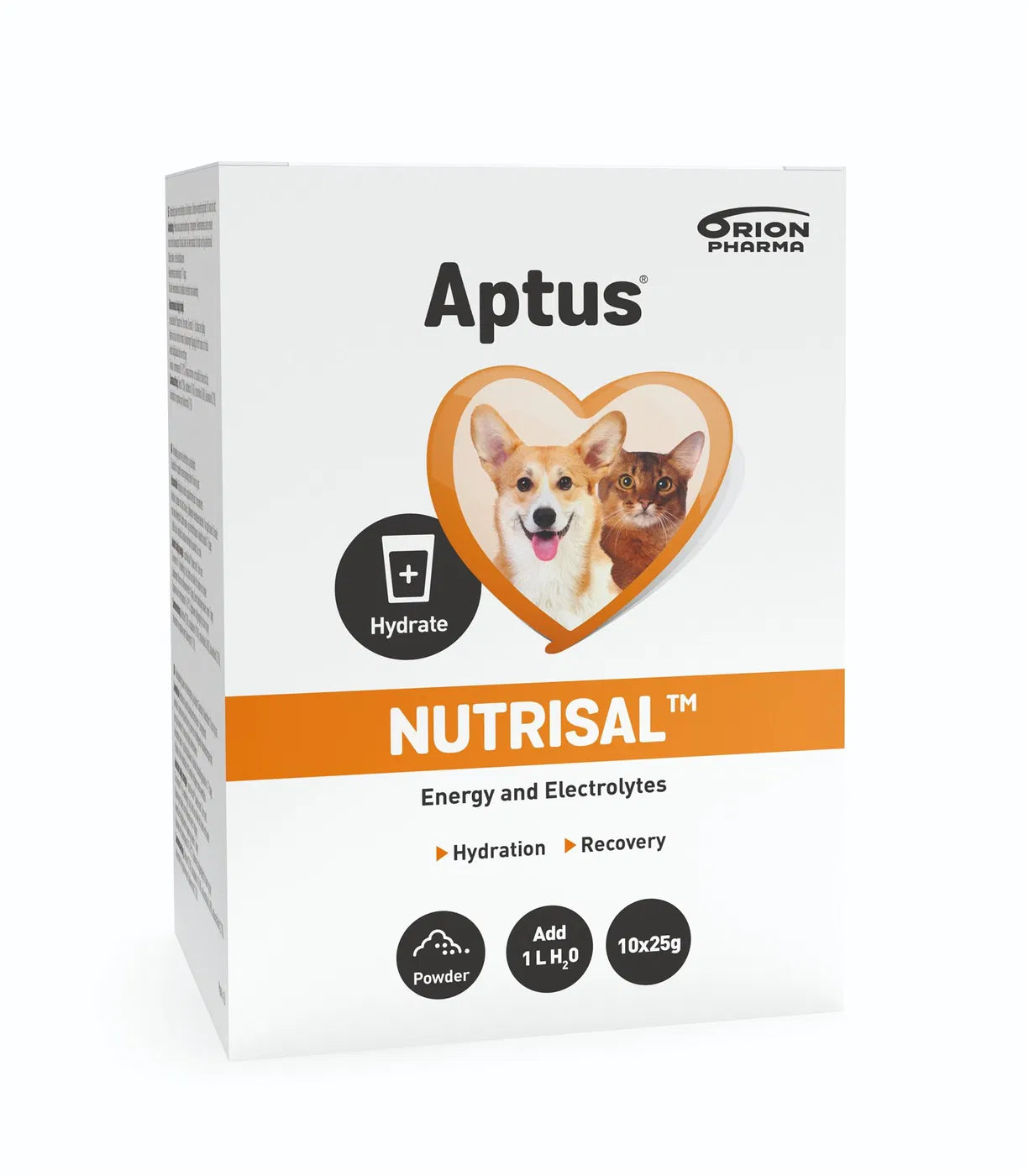 Supplementary food for dogs and cats Aptus Nutrisal plv. in the form of a water-soluble powder is designed to restore and maintain the balance of fluids and salts in the body and the lack of electrolytes in animals. Aptus Nutrisal plv. it is appropriate to administer during and after intestinal diseases, in the heat, when traveling or after exercise. The pack contains 10 individual sachets of Nutrisal to mix the isotonic solution or to add to food. With glucose, which increases the absorption of sodium and water.