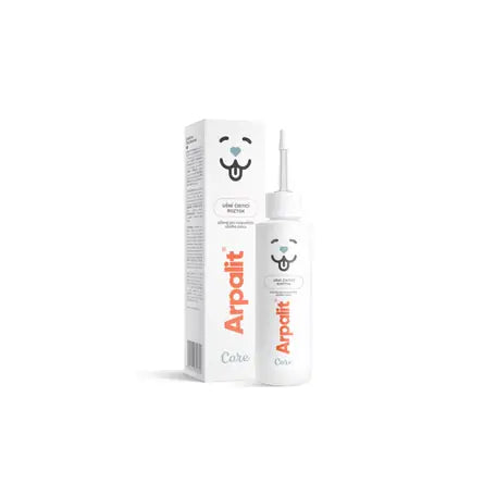Ear care should belong to regular rituals with your four-legged pet. Arpalit care water-based ear solution is designed for routine cleaning of the ears of dogs and cats. Thanks to the sodium salt content, it softens and dissolves earwax and impurities, and cleans the external ear canal. The contained extract of chamomile soothes and softens the skin of the external auditory canal. Regular use of the product helps to keep ears clean and thereby reduces the possibility of developing ear inflammations. Arpalit Care can also be used as a supportive agent in the treatment of inflammation and ear pain.