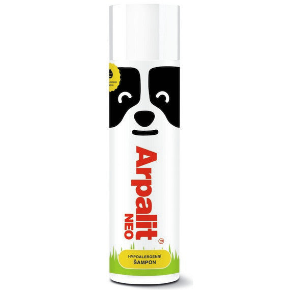 Apply an appropriate amount of shampoo to the soaked hair and gently massage to create a rich lather. For young or small animals, use shampoo diluted 1: 2 with water. After washing, rinse the coat thoroughly with lukewarm water. Repeat the procedure if the hair is heavily soiled. To increase the shine and health of the coat, apply an appropriate amount of Arpalit Neo conditioner with tea tree leaf extract after washing and gently massage it into the coat and skin. Leave on for 2-5 minutes. Then rinse the coat thoroughly again with lukewarm water. Dry the coat with a hair dryer or let it dry freely.