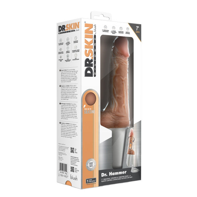 Blush Dr. Skin Silicone Dr. Hammer 7 Inch Thrusting Dildo with Handle Beige