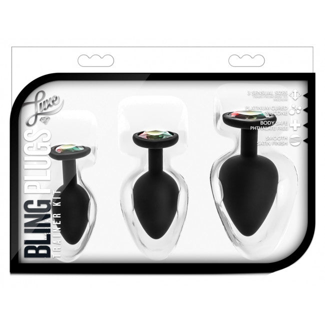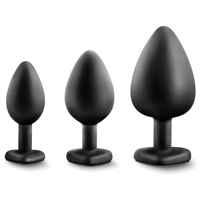 Enjoy your anal play romantically and tastefully! The set of black butt plugs is ideal for beginners and more experienced explorers of their backdoors. The plugs are made of silky soft silicone, finished with a charming stone and their shape allows for very comfortable insertion.