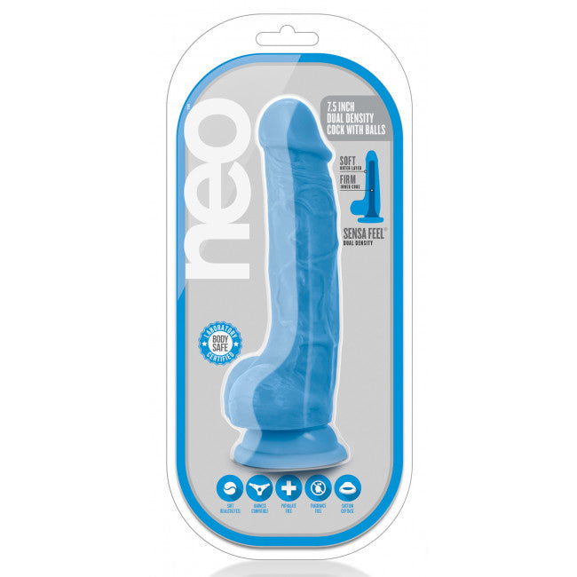 Blush Neo 7.5 Inch Dual Density Cock with Balls Blue