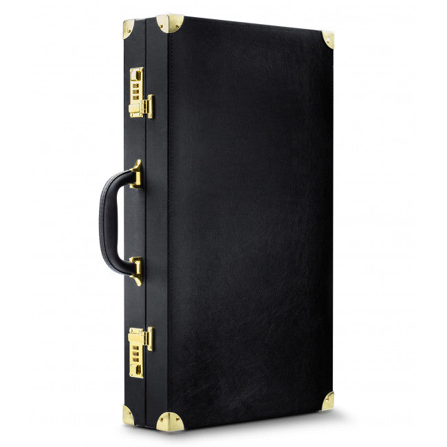 A beautiful black and gold suitcase containing everything you need to indulge in your favorite BDSM temptation! Open the luxurious suitcase and admire the neatly arranged durable tools made of high-quality vegan leather. Lock the suitcase so that your privacy is not violated.