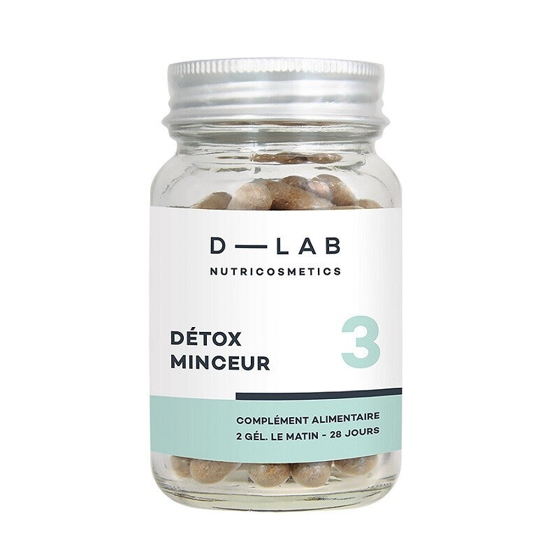 D-LAB Detox Minceur is a capsule food supplement that contains artichoke, turmeric and ascophyllum.