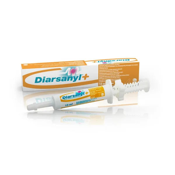 Diarsanyl Dietetic paste for dogs and cats is a suitable supplement for acute diarrhea , which helps maintain normal functions of the digestive tract. The active substances contained protect the intestinal mucosa and help its regeneration, montmorillonite absorbs and neutralizes harmful substances (bacteria or toxins). The product is supplemented with electrolytes replacing lost ions, and simple, quickly absorbable sugar dextrose, which serves as a ready source of energy . The creamy paste is well accepted by most dogs and cats thanks to its pleasant taste and smell .