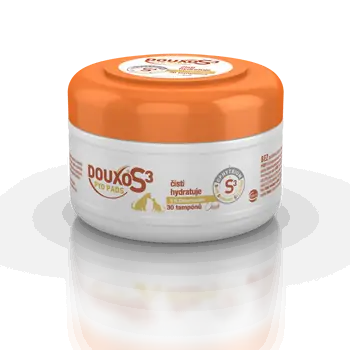 Douxo S3 cleansing swabs are designed to clean the folds of the skin, paws and ears of dogs and cats that are susceptible to bacterial or yeast infections. It gently cleanses the skin and thanks to 3% chlorhexidine digluconate has an antiseptic effect. They contain ophytrium – a purified natural ingredient from Japanese Sedoulk that supports skin barrier functions. Ensures supple & long-lasting hydration & soothes irritation Gentle formula without parabens, phthalates and dyes, with a delicate hypoallergenic scent, respects the natural pH of the skin of dogs and cats.