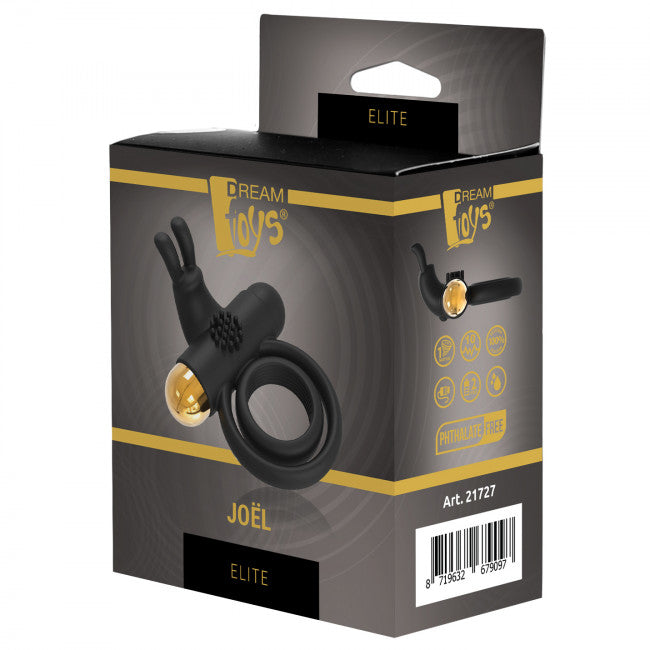 Elegance and performance together? Yes! The Joel vibrating ring from the Prestige collection will stand out on your nightstand thanks to the luxurious combination of black soft silicone and gold details. It offers you 7 vibration patterns and 3 speeds that your clitoris will enjoy during lovemaking. It then tightens the penis at the base and around the testicles, so it will hold even during wilder action. Everyone will love Elite toys !