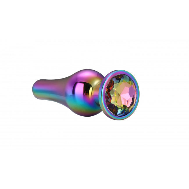 Do you love beautiful jewelry and want one for your anal? This is perhaps the most beautiful butt plug ever! It is rainbow colored and topped with a gorgeous colorful sparkling stone. Enjoy its exciting conical shape for easy insertion and erotic pleasure and try heating or cooling the plug.