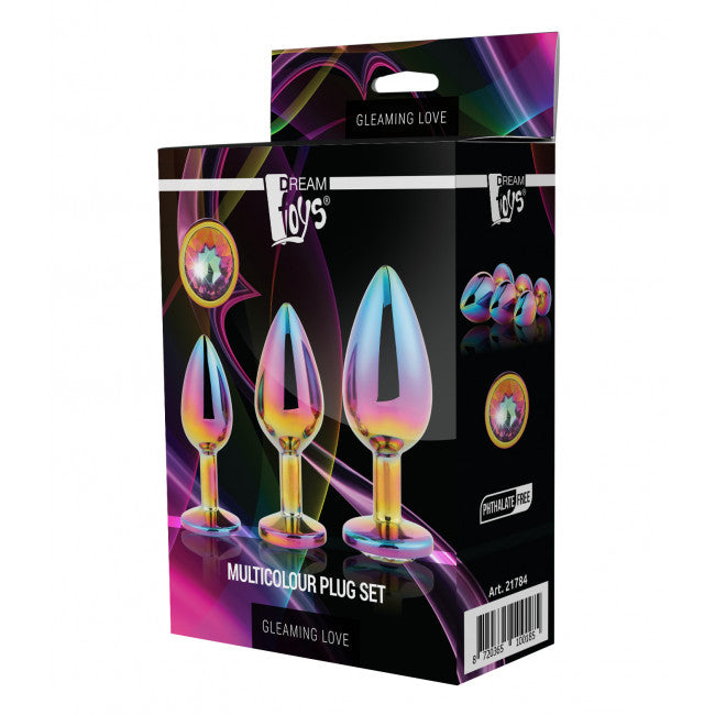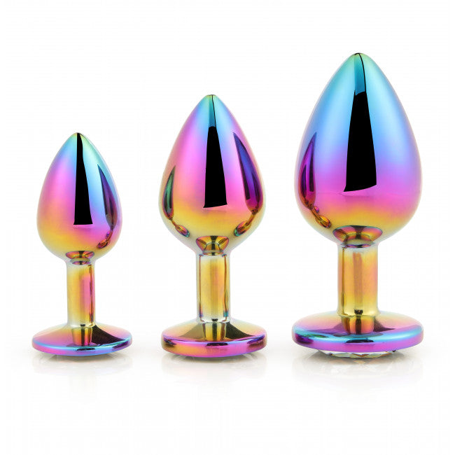 Do you love beautiful jewelry and want one for your anal? This is perhaps the most beautiful set of butt plugs ever! They are rainbow colored and topped with a gorgeous colorful sparkling stone. Enjoy their shape for easy insertion and erotic pleasure and try heating or cooling the plugs.
