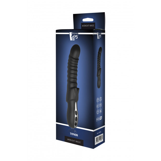 Typhon stands out among other toys! It is sensually black with a chrome detail on the base. It is made of so-called liquid silicone, which is silky smooth and soft to the touch and the buttons ensure comfortable control. Enjoy its soft tip, curved shape with stimulating ridges and reach your G-spot while gently caressing your clitoris.