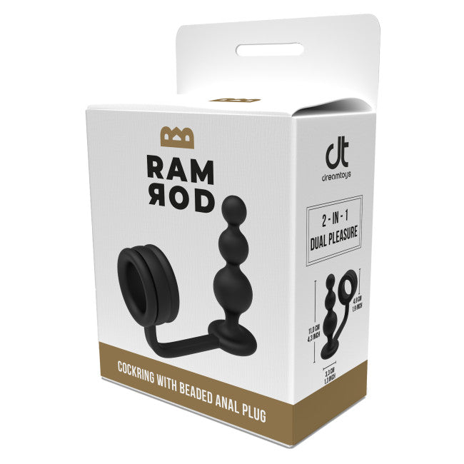 Dream Toys Ramrod Cockring with Beaded Anal Plug Black