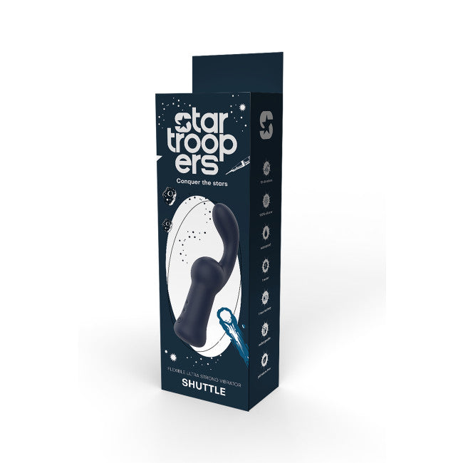 Unrivaled anal pleasure? The Star Troopers collection represents the best for your backdoor! It also includes the Shuttle - an anal vibrator for sophisticated prostate stimulation. It fits comfortably in your hand thanks to the practical handle and the curved tip makes it easy to target the prostate. Enjoy its super strong vibrations with 5 rhythms and 5 speeds!