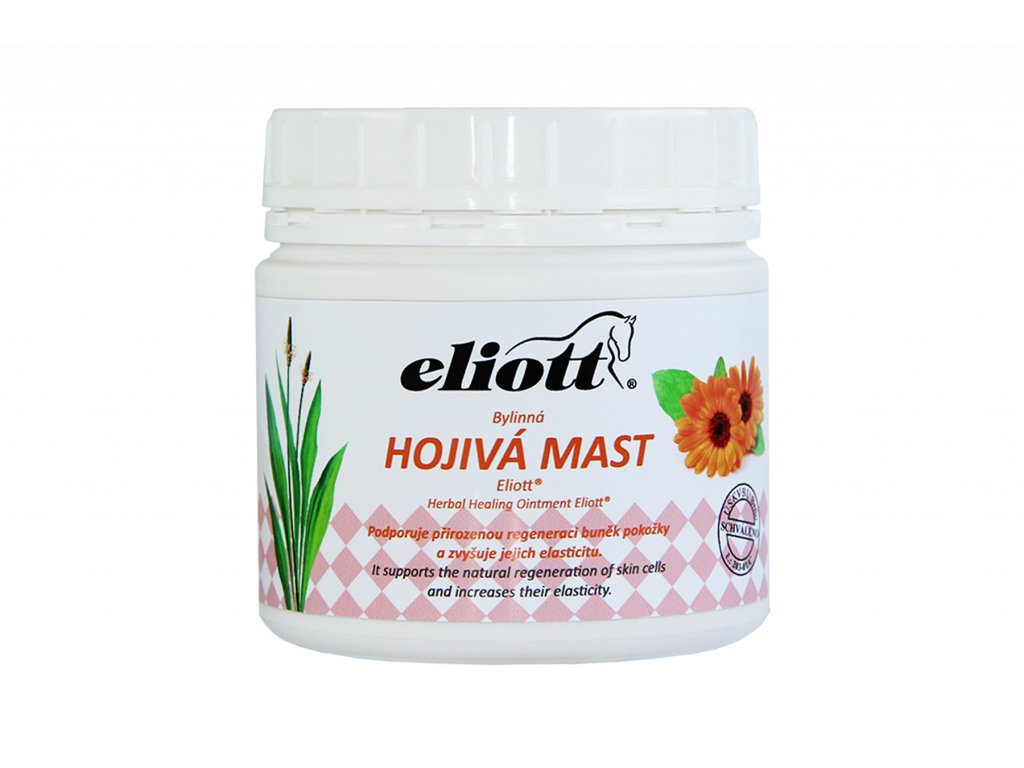 Eliott herbal healing ointment has a beneficial effect on inflamed, wet and poorly healing wounds, scars, chronic inflammation, burns, fractures in the snout area and on rough scaly scaly skin. It contains extracts of marigold and lanceolate plantain, increases their elasticity and maintains moisture in the upper layers of the skin. Suitable for massages with inflammation of the veins, thrombosis and massages of hardened nodes.