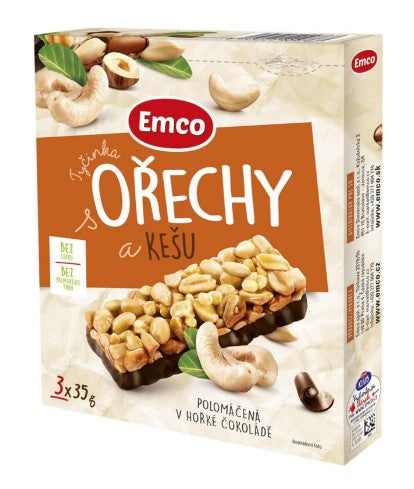 Ingredients: Roasted PEANUTS (34%), Roasted CASHEW NUTS (24.8%), Dark chocolate (12%) (sugar, cocoa BUTTER, cocoa powder with reduced fat content, cocoa mass<br>emulsifier: rapeseed lecithin, vanilla extract), Invert sugar (glucose, fructose), Maltose syrup, Extruded cereals (corn, rice, sugar, table salt), Dextrose<br>emulsifier: rapeseed lecithin, Table salt