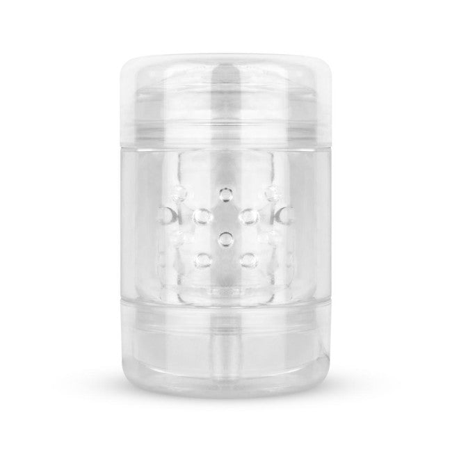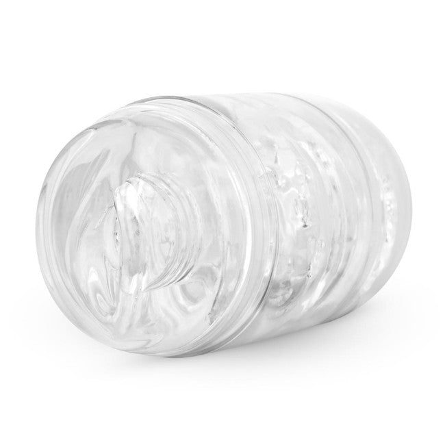 Flexible transparent masturbator with 2 open ends and a stimulating texture!