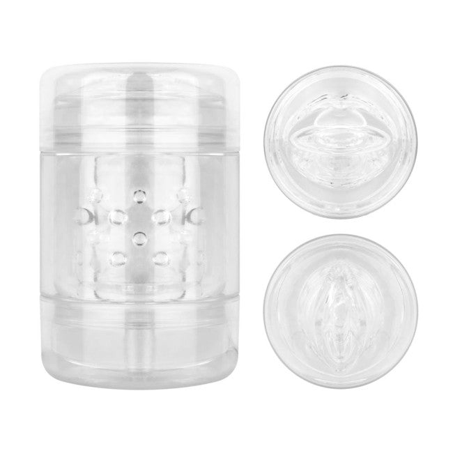 Flexible transparent masturbator with 2 open ends and a stimulating texture!