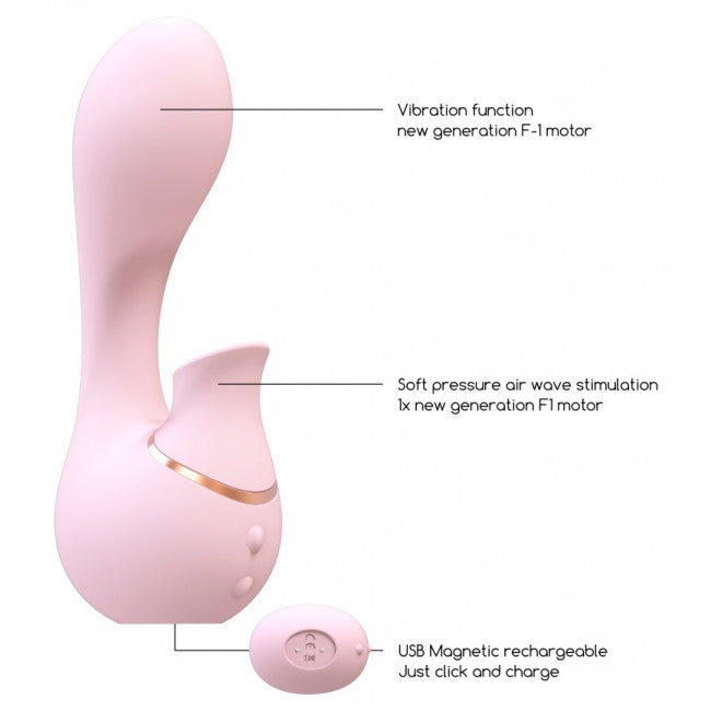 What woman wouldn't want dual stimulation and a breathtaking orgasm from inside and out? Mythical is here to fulfill your every passionate desire. Its powerful F1 motor with 10 vibration speeds is hidden inside the silky soft silicone body to aim directly at the g-spot. The clitoris will then be convulsed with excitement, thanks to the touchless stimulation of pressure waves.