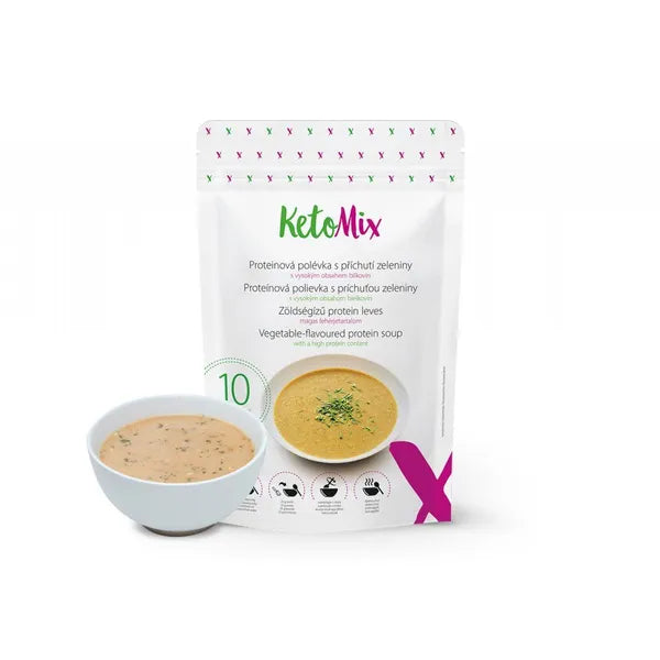 KetoMix Protein vegetable soup will make your stomach feel good at any time of the day. It is a quick and pleasant variant of a protein meal that satiates and at the same time supplies the body with minerals and vitamins . Its composition designed for the keto diet contains a minimum of carbohydrates + a portion of quality proteins . with just one meal You get 12 g of protein ! The soup, which is part of a comprehensive diet program, can also be used as a complementary food to the regular menu. In the first phase of the KetoMix diet, you can replace up to 5 meals a day with this food , in combination with other permitted foods.