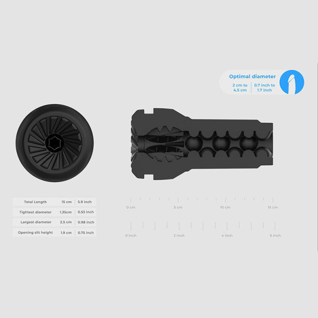 This discreet and unrealistic masturbator has a modern look at first glance and will be appreciated by all those for whom privacy, comfort and quality are important. It will suit a wide range of penis sizes and shapes, including larger ones, making it unique in the field of masturbators.