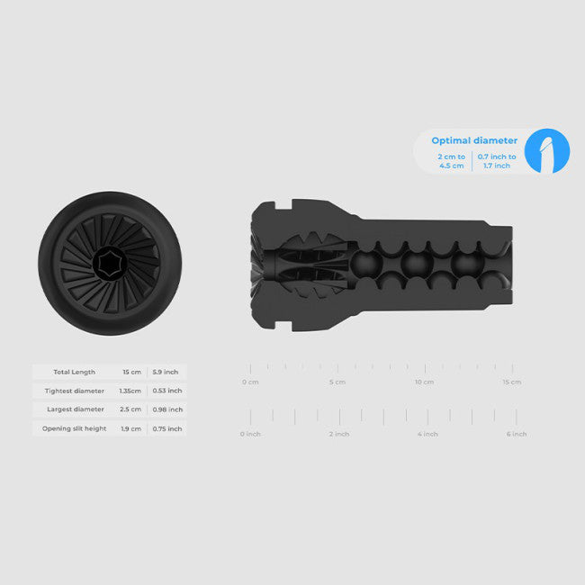 This discreet and unrealistic masturbator has a modern look at first glance and will be appreciated by all those for whom privacy, comfort and quality are important. It will suit a wide range of penis sizes and shapes, including larger ones, making it unique in the field of masturbators.