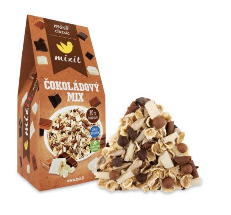A handful of white, dark and milk chocolate shavings. This is simply a classic! When brittle oat flakes, chocolate crispies and sunflowers are added, a new muesli classic is created: the chocolate mix. Have a simple and delicious breakfast. High fiber content