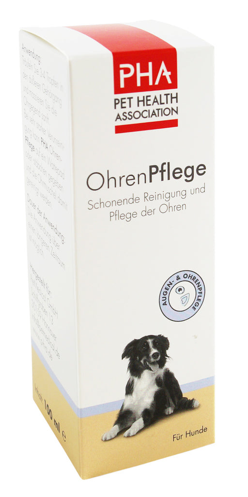 Use the pipette to drip 3-4 drops into the outer auditory canal and gently massage the ear area. Regular use of PHA Ear Care dissolves dirt and excessive deposits in the outer auditory canal, making it easier for the ear to clean itself. In the case of very heavy soiling, PHA Ear Care can be applied to a cotton pad or swab and the ear can be cleaned with it.