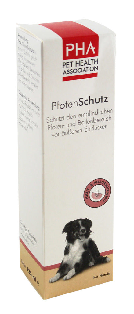 The selected ingredients contained in PHA PfotenSchutz care for brittle and cracked skin in the paw and ball area. The natural elasticity and resilience of the skin and balls of the feet is restored. PHAPfotenSchutz protects against excessive irritation, mechanically caused minor injuries and the effects of wet and cold when used in a targeted manner.