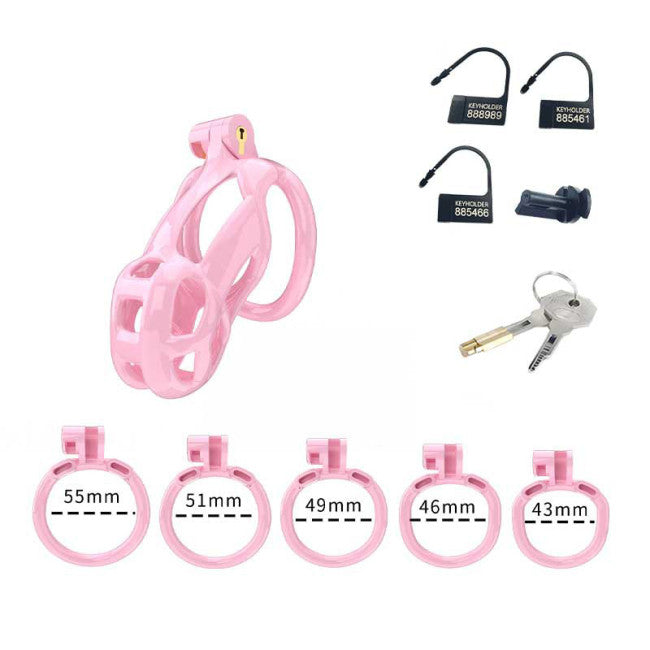 The cage has openings in the front that do not obstruct physiological needs and the cage wearer will be able to urinate comfortably. In addition to the cage itself, the set includes 5 rings in different sizes (43 - 55 mm), a copper lock and 3 disposable plastic locks and 2 plastic screws.