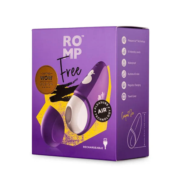 rechargeable clitoris stimulator The ROMP Free with patented Pleasure Air technology will provide you with unprecedented pleasure. Just apply it to the clitoris using a lubricating gel and enjoy moments of pleasure. The pulsator stimulates the clitoris without contact, delighting with unique air vibrations, without the feeling of excessive stimulation. It offers 10 levels of intensity and is easy to control with buttons. It is equipped with a cover for hygienic storage.