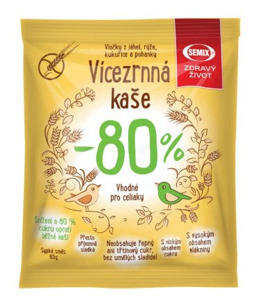 Multigrain porridge with reduced sugar content by 80% compared to regular porridges, but still pleasantly sweet. It is made from needles, rice, corn and buckwheat. It is gluten free. Does not contain beet, cane sugar or artificial sweeteners. It has a high fiber content.