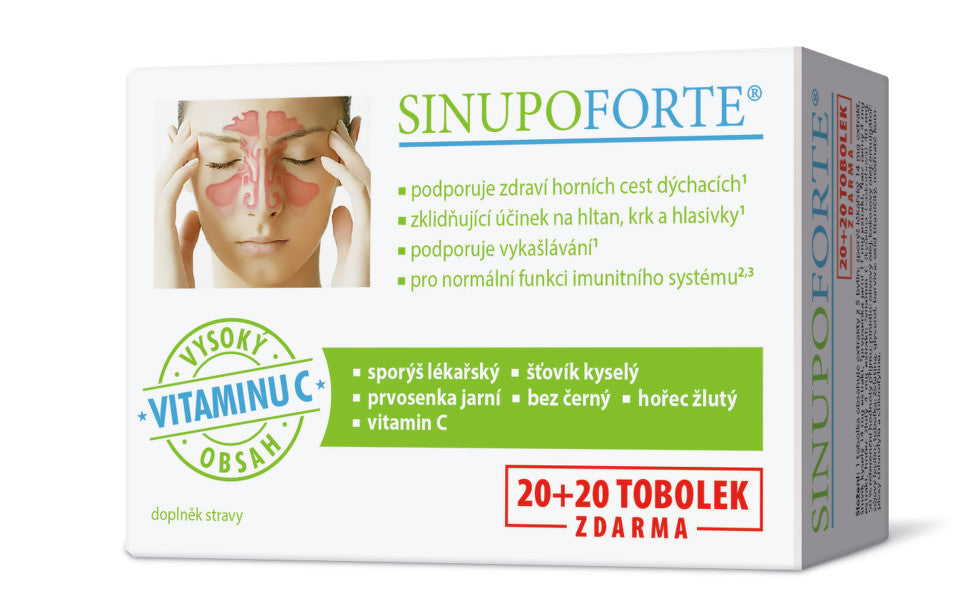 SINUPO Forte is a dietary supplement that contains vitamin C and extracts of 5 herbs - bitter yellow, primrose, sorrel, elderberry and butterbur.