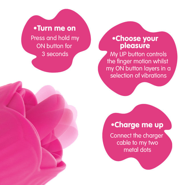Made from luxurious silicone that's silky soft to the touch and completely body-safe, the rose has a satisfying finger at the center of its bloom, designed to mimic sensual stroking. Choose from 10 motion modes and 10 pleasure settings to find the way you like best.
