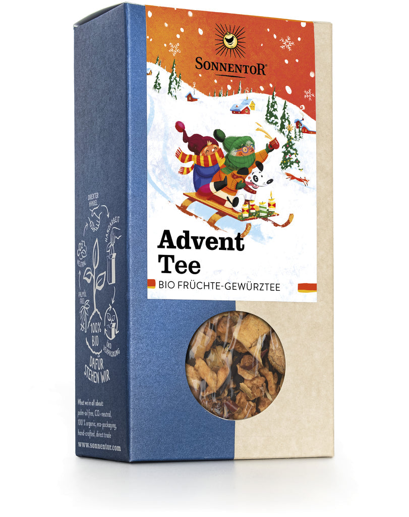 Advent, Advent... If you light a candle on the Advent wreath week after week, this tea blend should not be missing. Thanks to apple, hibiscus and rose hips, the Advent tea shines in the cup in rich red! Cloves and cinnamon give it a festive touch. Have a good start to the pre-Christmas season!
