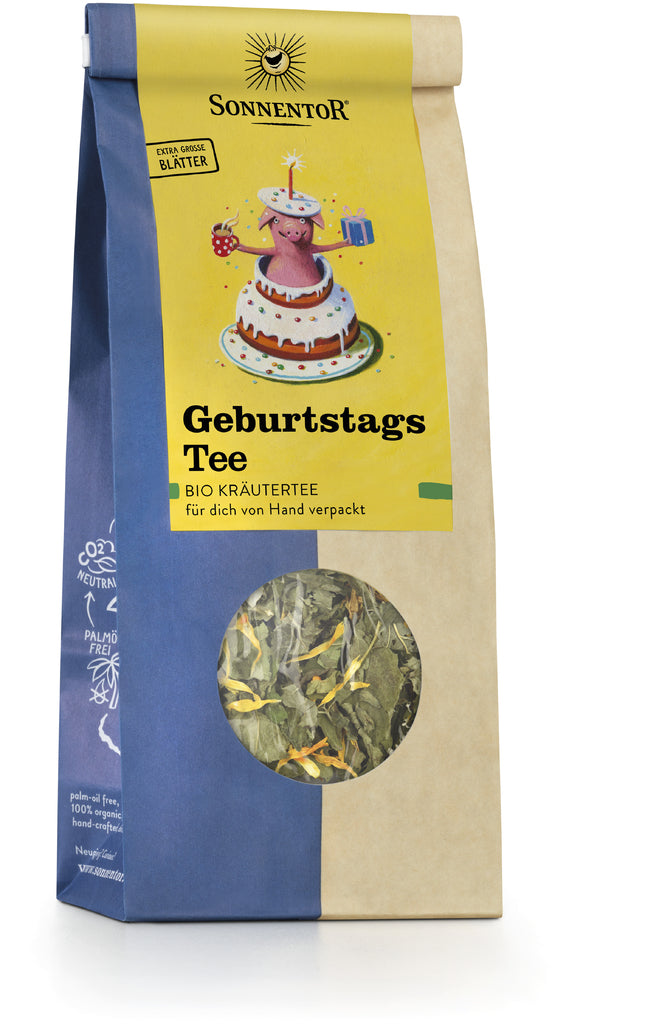 A very special mixture for a very special day. The tea shimmers in a matt straw yellow, its aroma impresses with a strong floral note and spicy, fresh mint. The dried leaves are packaged by hand so that the essential oils are preserved as well as possible. The tea goes perfectly with an afternoon snack, with sorbets, fine desserts with chocolate, and harmonizes wonderfully with spring cuisine and – how could it be otherwise – with birthday cake. This tea is packaged by hand directly on the Bauer family farm.