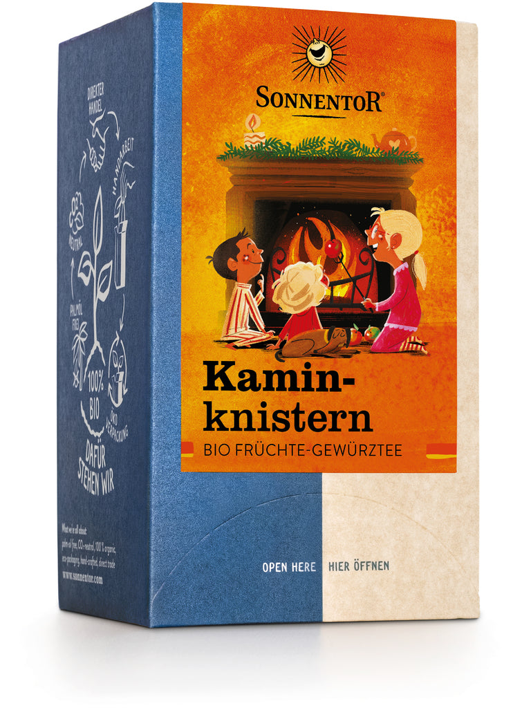 When it's freezing cold outside, we need a tea with a cozy factor. This fruity mixture comes at just the right time. Sip by sip, the crackling tea from the fireplace wraps itself around you like a warm blanket. Thanks to rose hips, apple and cinnamon, it shines carmine red in the cup. Whether as tea or punch – we are on fire!