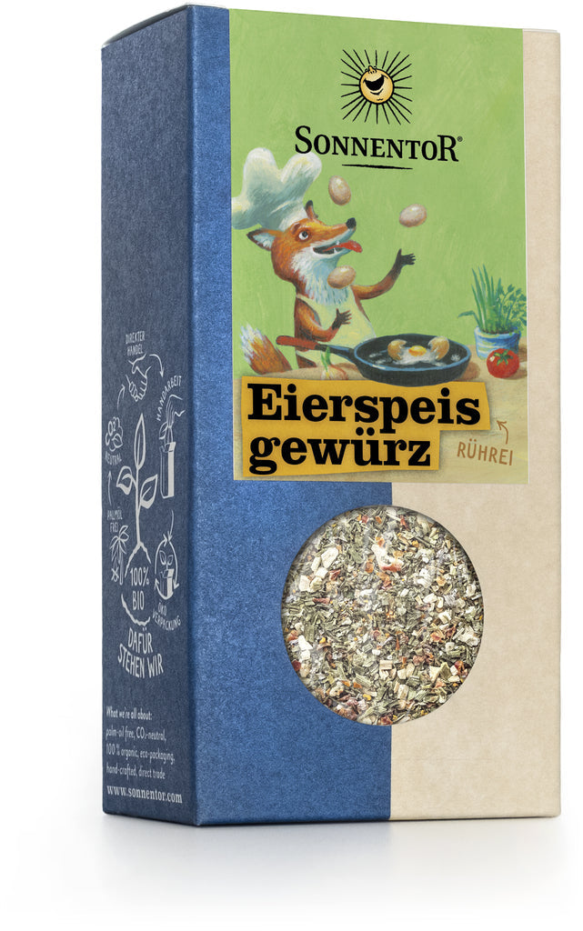 The new favorite spice for everyone who likes to mess around. Whether scrambled eggs or omelettes or pasta casserole - this spice mixture with sea salt has everything you need. Chives, turmeric and tomatoes conjure up color on the plate and bring variety to the egg. The fox with the pan goes crazy!