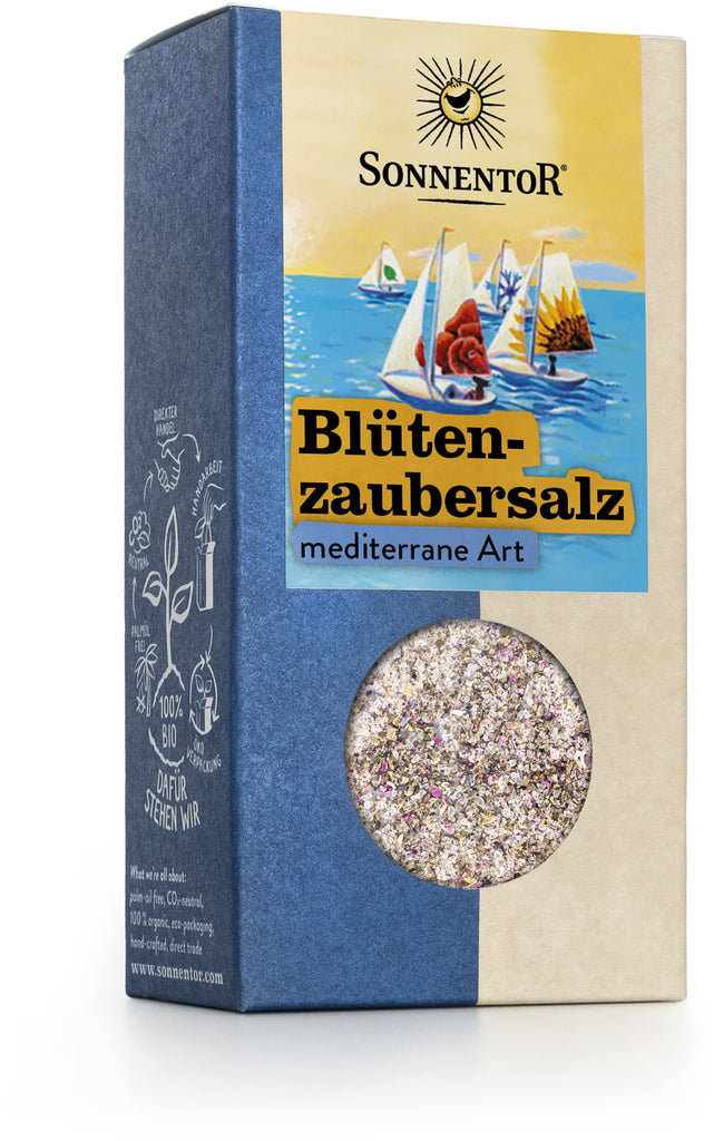 Immerse yourself in a sea of flowers and spices. Magical flowers bring a colorful play of colors to your dishes, while sea salt, basil and oregano provide a Mediterranean aroma. It's no wonder that the mixture goes well with fish and seafood. But also with quiche and cheese. Set sail and head off on spicy adventures.