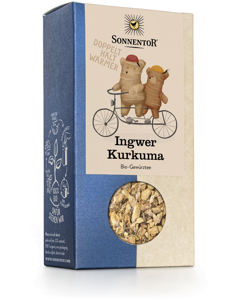 When ginger and turmeric work together, you start to sweat. Because with this spirited tea blend, two spicy all-rounders heat you up - after all, twice keeps you warmer. Also included: galangal. The tuber is also a member of the ginger family. As we all know, good taste runs in the family. Goes wonderfully with exotic soups and curries.