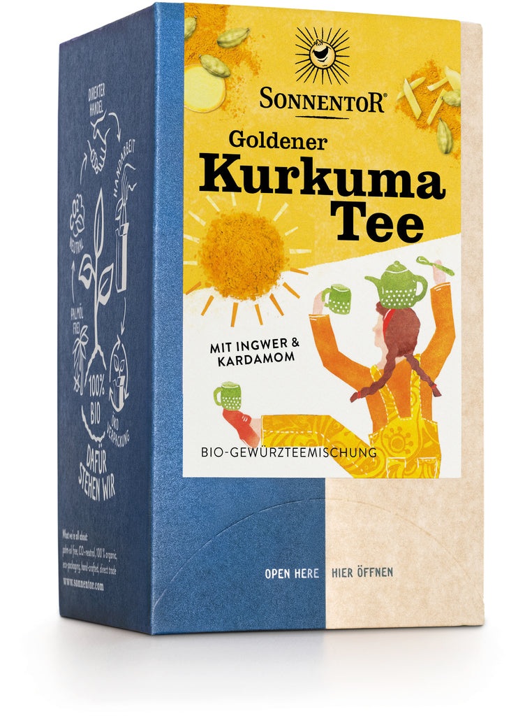 Spice up your life! With the golden turmeric tea you can now drink tea, just by the way. Turmeric is known for its versatility. Make yourself invincible in every season with this tea. It shines in a rich, dark yellow and tastes wonderfully spicy and full-bodied. Refined with a small sip of (vegetable) milk, it is an excellent alternative to coffee. When drunk lukewarm, it wonderfully complements various types of cheese and colorful vegetable dishes.