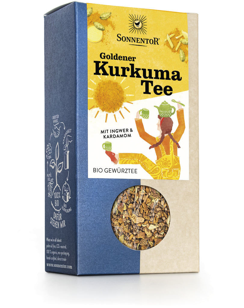 Spice up your life! With the golden turmeric tea you can now drink tea, just by the way. Turmeric is known for its versatility. Make yourself invincible in every season with this tea. It shines in a rich, dark yellow and tastes wonderfully spicy and full-bodied. Refined with a small sip of (vegetable) milk, it is an excellent alternative to coffee. When drunk lukewarm, it wonderfully complements various types of cheese and colorful vegetable dishes.