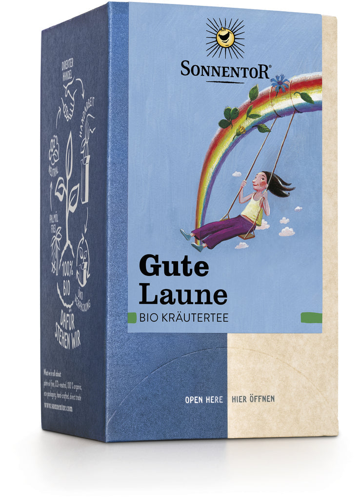 A good mood is contagious. It's clear that this herbal tea puts you in a good mood, because it shimmers in the cup in an equally bright yellow. The aromatic composition ensures a cheerful mood with a fruity mint note that goes well with fish, pasta and light summer desserts. With a velvety-soft finish, Good Mood is very popular even with the littlest ones among us. The good mood herbal tea is packaged by hand directly on the farm of the Zach and Seebacher families. Please smile!
