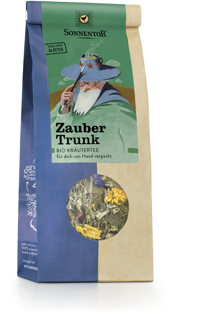 Get inspired! The power of herbs is almost magical. The magic potion shimmers in a rich golden yellow, as it captures the summer with lemon balm, lime blossom, rosemary, thyme and rose. It tastes spicy and floral with a fresh, subtly bitter note and goes wonderfully with cakes, sorbets, fruit and curds. The dried leaves are packaged by hand so that the essential oils are preserved as well as possible. Hex-hex!