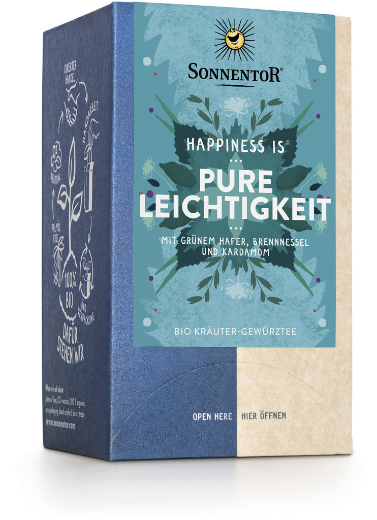 Experience lightness! This tea with green oats, nettle and cardamom helps you come clean and find lightness. The sweet, spicy and herbaceous tea goes wonderfully with light salads and vegetable soups. Enjoy the good feeling that less can be more.