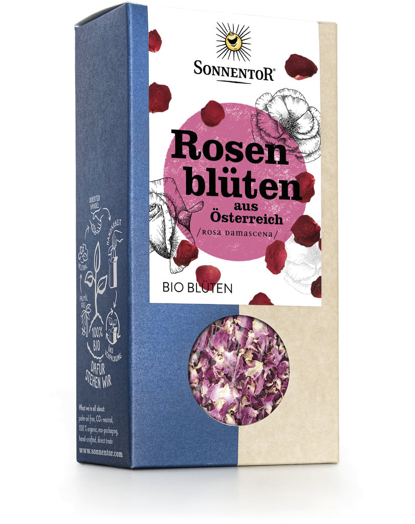 The rose petals for this tea are carefully harvested by hand in Austria. A special treasure!
