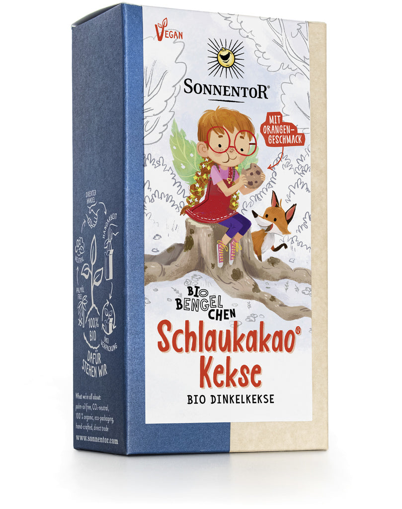 Do you like our clever cocoa? Then you will love this crunchy treat. Organic little boy Constanze shaped the spicy cocoa into sweet cookies and refined it with orange flavor. No palm oil and sweetened exclusively with coconut blossom sugar. Practical for on the go and perfect for Cookie Monsters big and small.