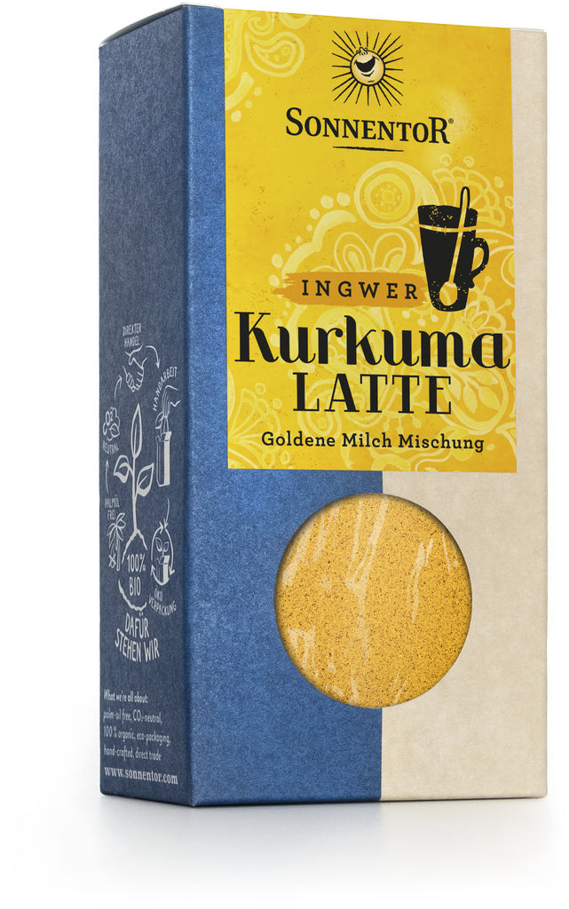 Looking for a new favorite drink? Turmeric latte, also called golden milk, is yellow, soothing and is prepared in warm (vegetable) milk. The yellow-orange powder smells pleasantly spicy and slightly tart. The special interaction with the slightly spicy ginger cheers up every mood. Simply stir in and enjoy the cozy, warm drink!