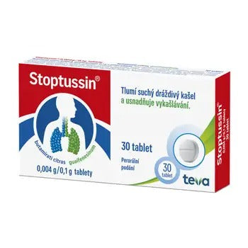 Stoptussin suppresses dry, irritating , difficult-to-control cough of various origins. At the same time, it makes it easier to clear the mucus . Stoptussin contains two active substances. Butamyrate soothes an irritating cough but does not dampen the respiratory center. Guaifenesin reduces the viscosity of mucus and thus facilitates the transport of mucus and expectoration. You can use the practical form of tablets, for example, when traveling. Stoptussin tablets can be taken by adults and children from 12 years of age.