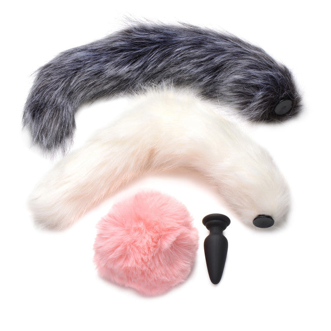 Are you sometimes a wild beast and other times a happy bunny? With this set of anal plug and 3 furry tails, you can change your animal image as you please. Changing the tail on the plug is quick and easy, and the premium silicone plug will pamper your back door regardless of the tail.